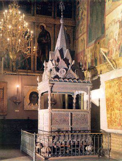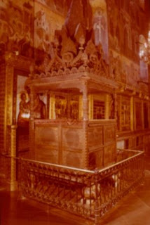 Many of the museums were Cathedrals some of which are now back in service (so to speak) for state occasions. One of them was the Uspenski Sobor or Cathedral of the Assumption. Photos were forbidden so I bought a set of 18 professional slides. They were in gorgeous colour and well worth the extortive price charged to foreigners.